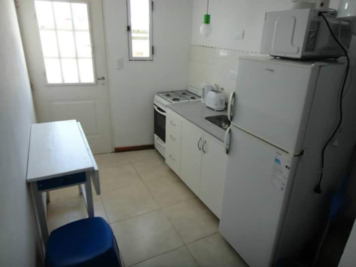 La cocina se provee equipada con vajilla y utensilios + Cocina de 4 hornallas con Horno + Heladera con freezer + Pava eléctrica + Tostadora + Microondas.