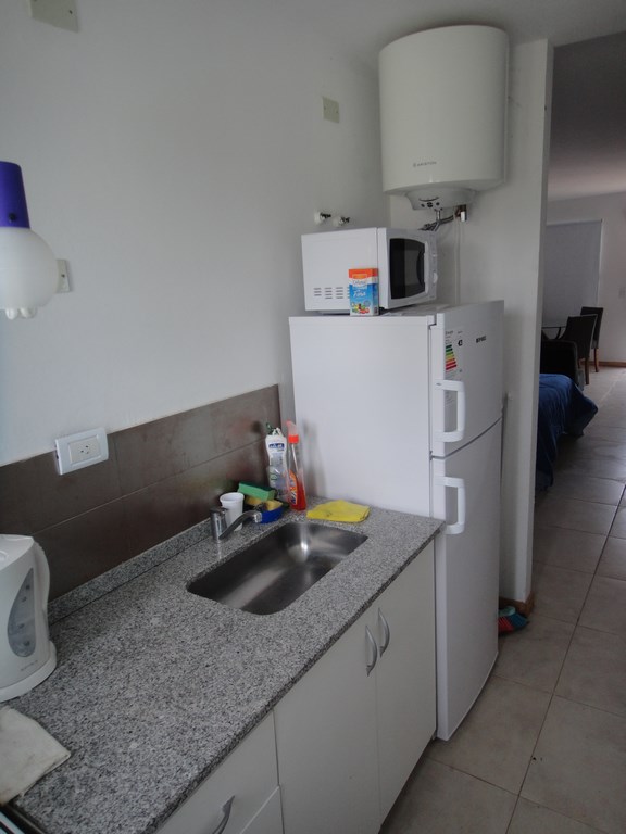 La cocina se provee equipada con vajilla y utensilios + Cocina de 4 hornallas con Horno + Heladera con freezer + Pava eléctrica + Tostadora + Microondas.